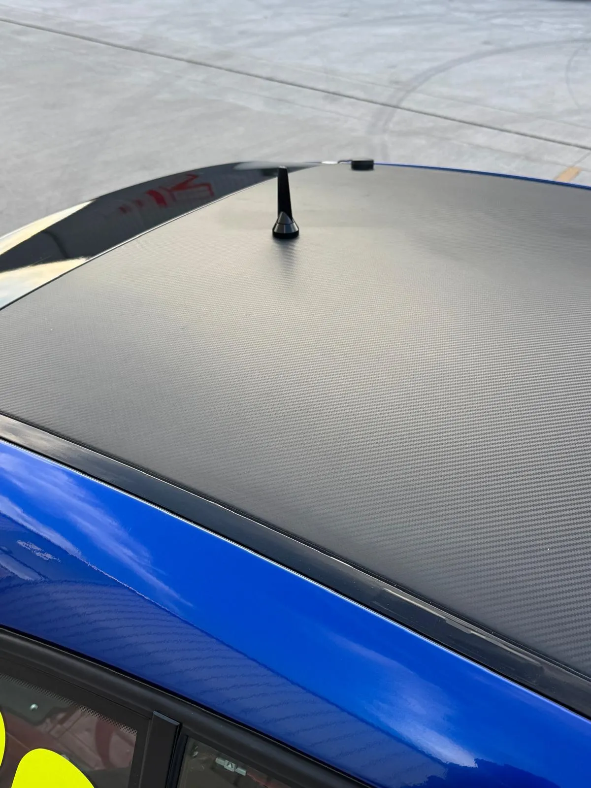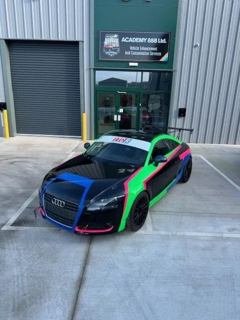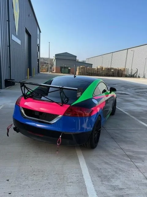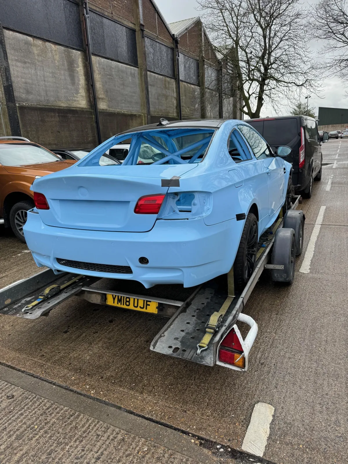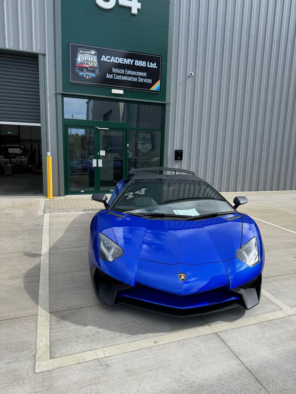 Full Wrap colour change from white to blue, with carbon wrapped roof panels, rear air vents, mirrors and front bumper. PPF (paint protection film) on the front bumper, headlights and bonnet.